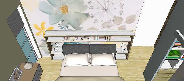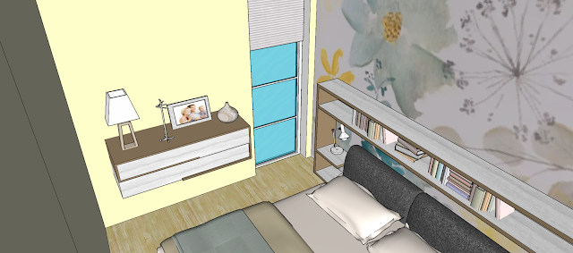 tak působí uklizeně. Na knihy je police přímo nad postelí, aby bylo vše