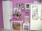 Když se teď na ni dívám, je tam té růžové nějak moc, ale v době, kdy jsem tuto ložnici zařizovala, jsem na ni byla zatížená. Na růžovou jsem však nezanevřela, používám ji ve více odstínech, avšak v menších dávkách. Pokud jsou vám některé věci povědomé, tak to není zdání, ale už jste je mohli vidět ve starších příspěvcích.